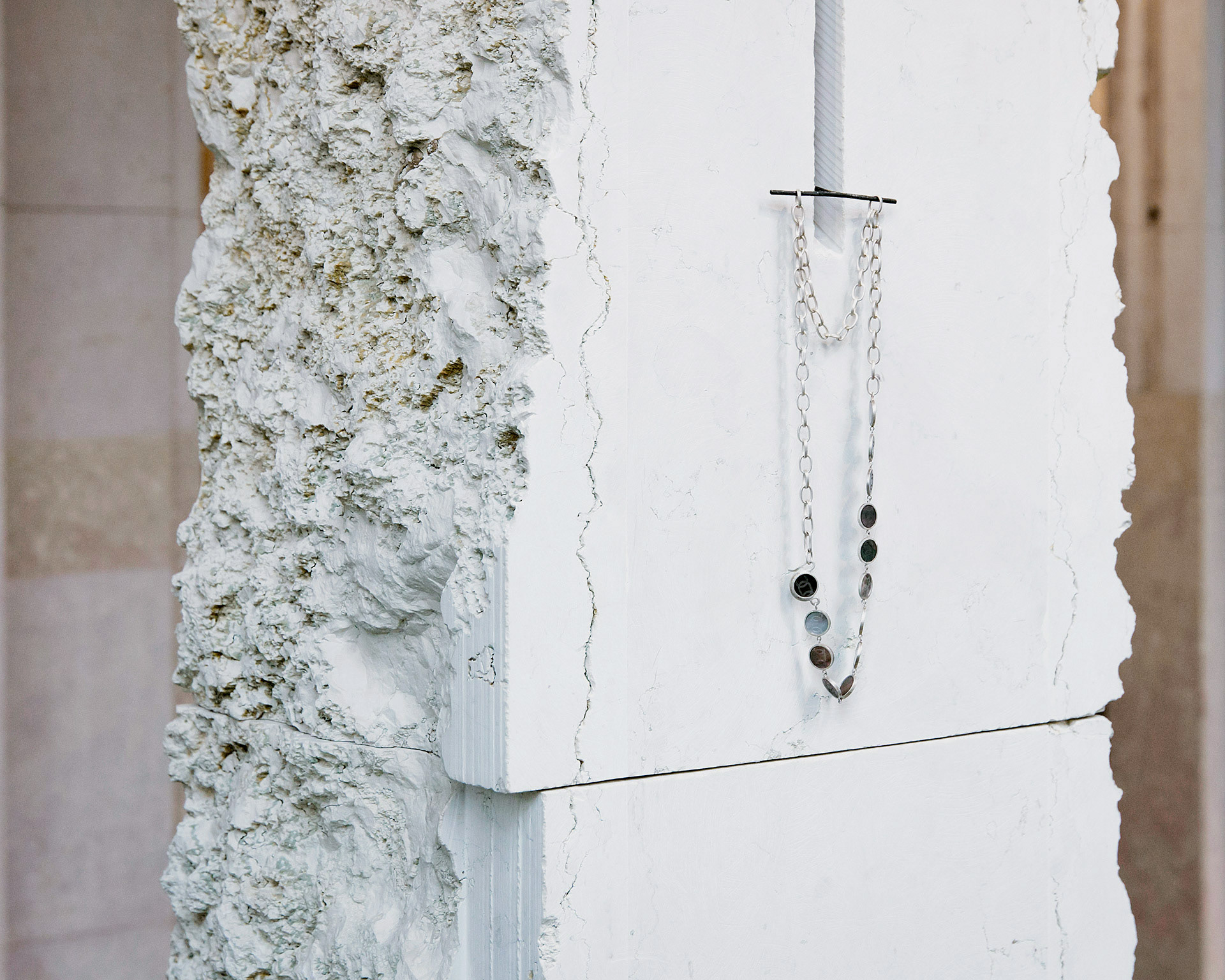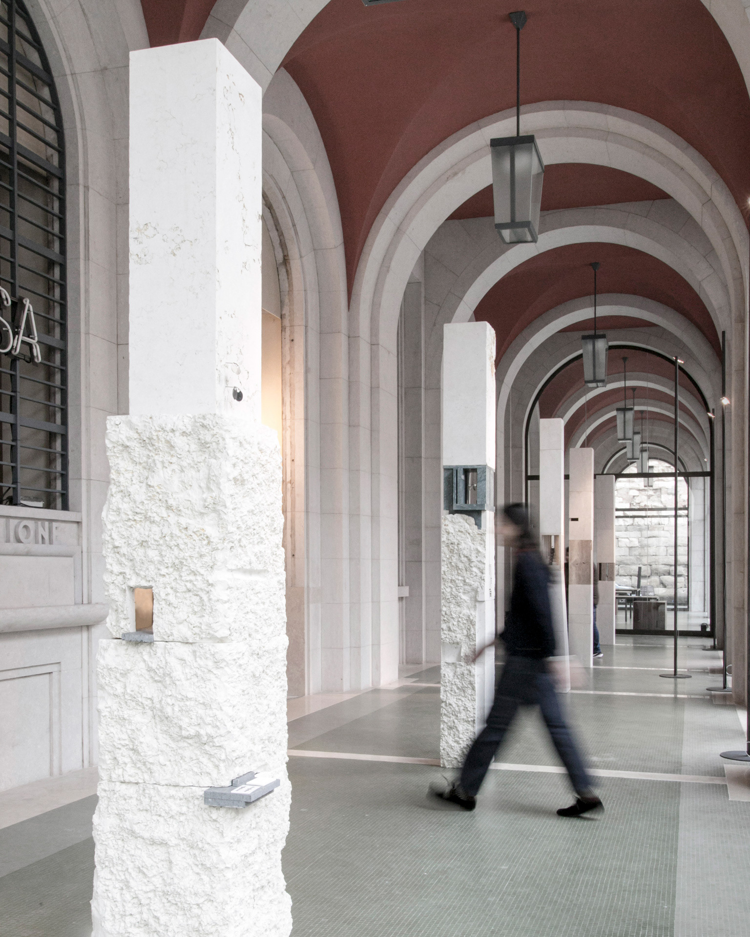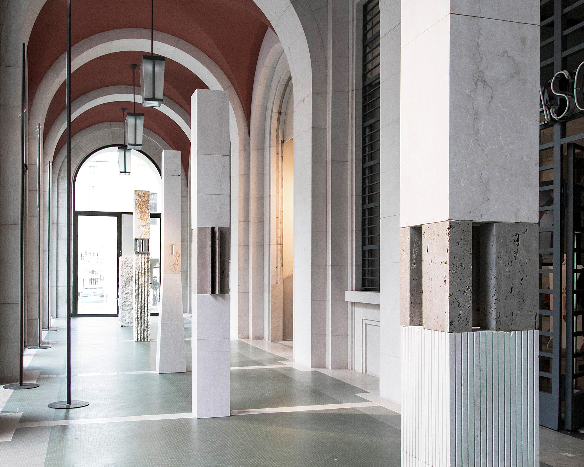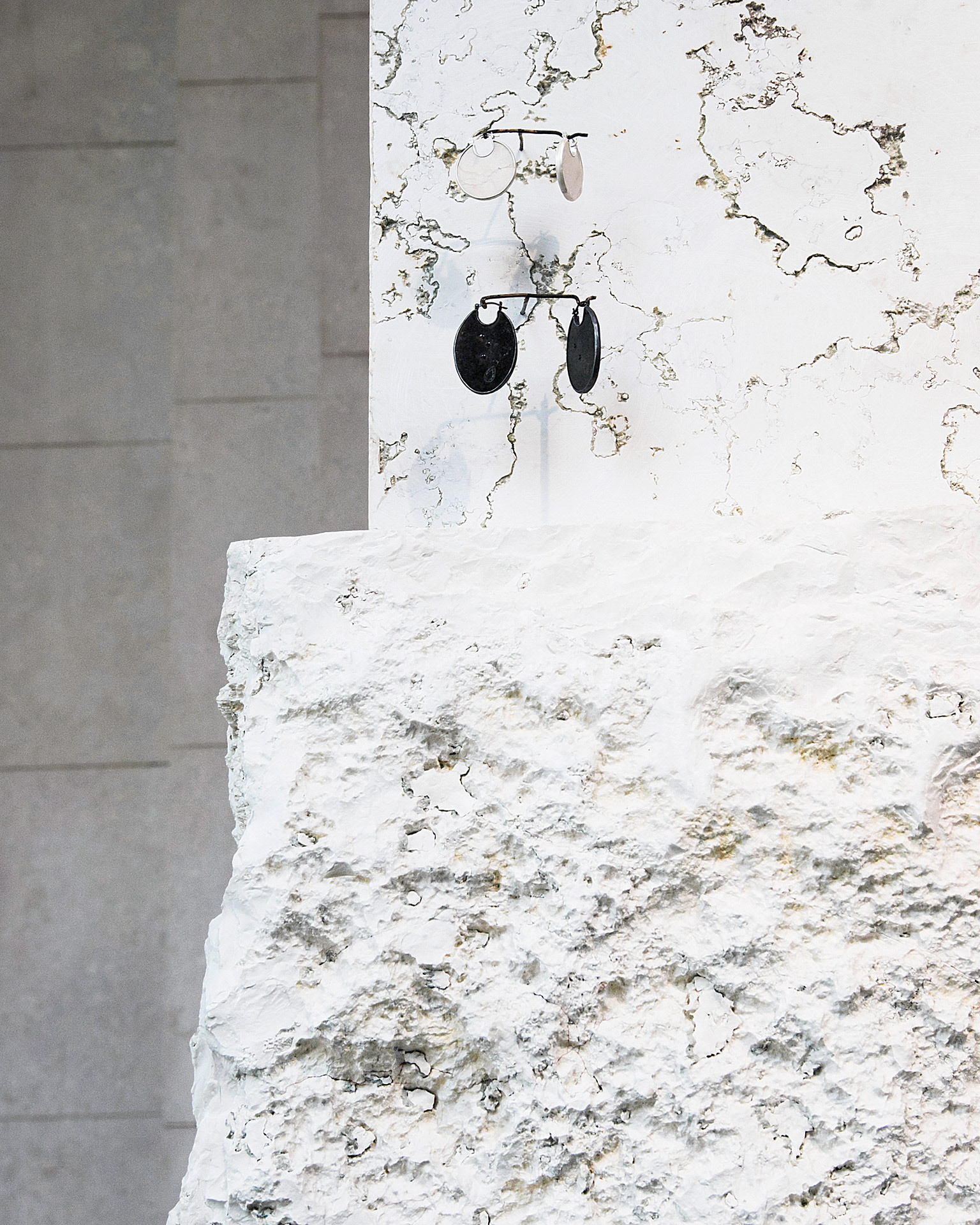 Innesti nasce come una ricerca sul rapporto tra gioiello e architettura, che fa dialogare scala, materia e memoria delle forme. Oro e argento si confrontano con la pietra, generando un dialogo tra l’arte orafa e l’arte della costruzione, tra dimensione intima e dimensione strutturale. L’installazione presenta gioielli di Carola Solcia Jewellery, di cui alcuni realizzati in marmo appositamente per questa occasione. In questi ultimi, il materiale tradizionalmente associato all’architettura e alla sfera pubblica, viene reinterpretato alla scala del corpo, trasformandosi in gioiello e instaurando un dialogo con il resto della collezione e con l’installazione che lo accoglie. Impronte, incisioni e superfici lavorate raccontano il gesto umano e il sapere dei mestieri. I gioielli sono custoditi all’interno di elementi architettonici litici che scandiscono il percorso espositivo, in un gioco di luci, ombre e materia che accompagna il visitatore. L’allestimento è progettato e curato da Atelier Federico Bertolo Architettura, attraverso il riutilizzo di materiali di scarto provenienti dalla lavorazione del marmo. Fondamentale il contributo di Roberto Faedo Marmi per la fornitura e la lavorazione dei materiali. Foto di Carmen Colombo.